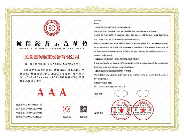 誠(chéng)信經(jīng)營(yíng)示范單位AAA