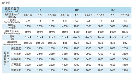 雙索雙瓣抓斗技術(shù)參數(shù)